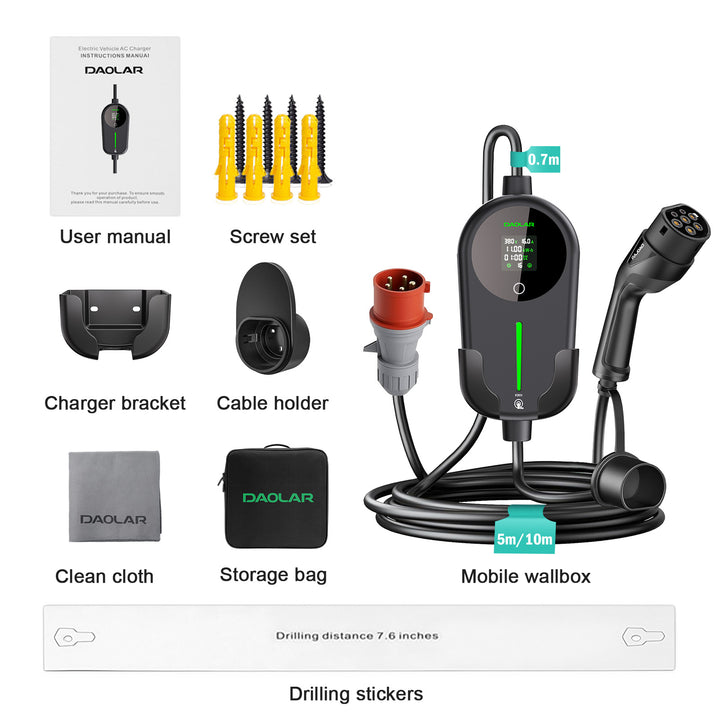 [Vlajková loď] Mobilná nástenná nabíjačka Daolar 11 kW s elektromerom, 6-16A 3-fázový nabíjací kábel typu 2 s nastaviteľným nabíjacím prúdom kWh, vodotesná nabíjacia stanica IP65