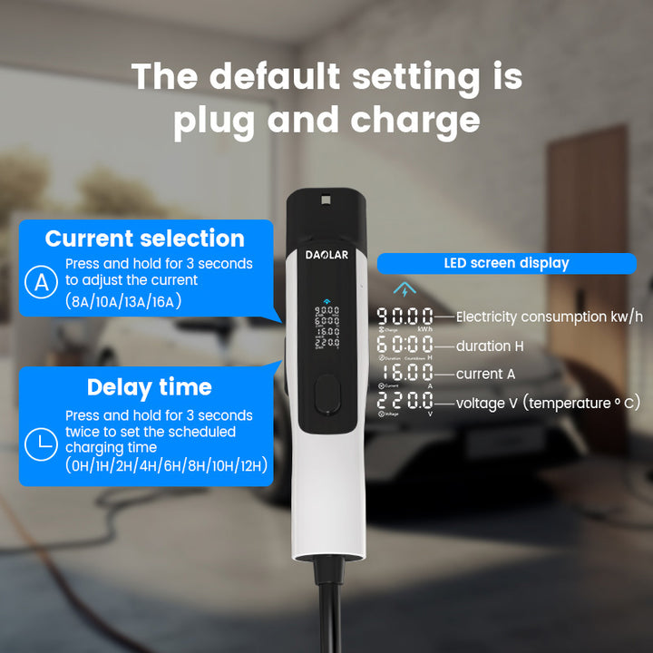 - Nastaviteľný prúd, flexibilné nabíjanie: Jednoduchým 3-sekundovým stlačením môžete **prepínať medzi 8A, 10A, 13A a 16A**. Optimalizujte nabíjanie pre domácu sieť alebo potreby na cestách, šetrite elektrinu a peniaze!