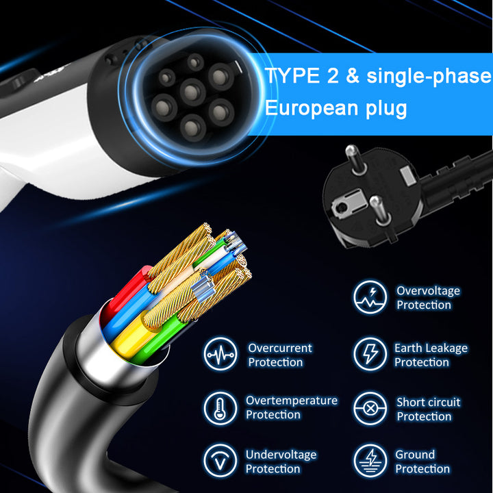 - Dáta v reálnom čase, na prvý pohľad: Typ 2 konektor má **krištáľovo čistý displej**, ktorý zobrazuje výkon, prúd, napätie a čas nabíjania v reálnom čase. Jednoducho sledujte stav nabíjania **3,68KW, 230V jednofázové, 16A**!