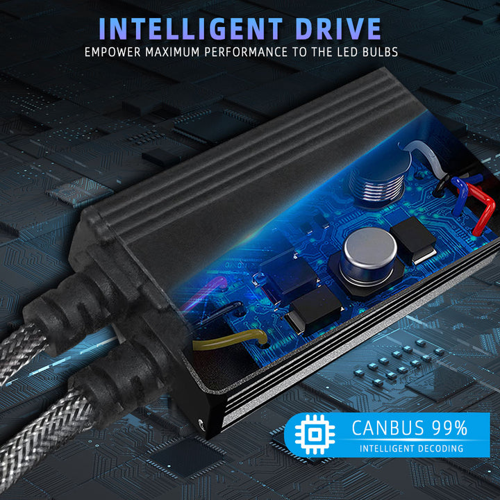 99 % CANBUS PRIPRAVENÉ A INTELIGENTNÝ OVLÁDAČ: Vybavené externou inteligentnou riadiacou jednotkou, tieto žiarovky disponujú pokročilými dekódovacími schopnosťami. Sú kompatibilné s 99 % systémov vozidiel, riešiac bežné problémy ako chybové kódy na palubnej doske, blikanie alebo rušenie rádia. Externý ovládač tiež oddeluje napájanie od tela žiarovky, čo ďalej pomáha pri riadení tepla.