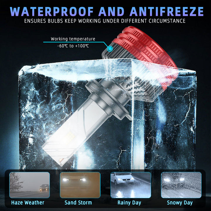 IP68 VODEODOLNOSŤ A ODOLNOSŤ VOČI VŠETKÝM POVETERNOSTNÝM PODMIENKAM: Navrhnuté tak, aby odolali extrémnym podmienkam, tieto žiarovky fungujú bez problémov pri teplotách od -60°C do +100°C. Či už čelíte silnému dažďu, snehu, piesočným búrkam alebo hmle, vodotesná a mrazuvzdorná konštrukcia zabezpečuje spoľahlivé osvetlenie. Kompaktný dizajn umožňuje jednoduchú, neinvazívnu inštaláciu „plug and play“ za pár minút.